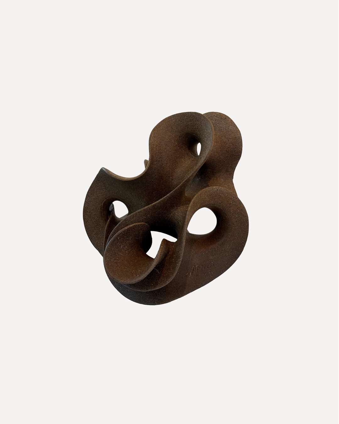La obra en cerámica de Alejandro Frieri parte de una forma originaria —un centro vacío que se expande y se multiplica—, creando estructuras orgánicas donde fragilidad y equilibrio conviven, y donde la materia se convierte en un medio para reflexionar sobre el origen, la transformación y la relación entre conciencia y forma.