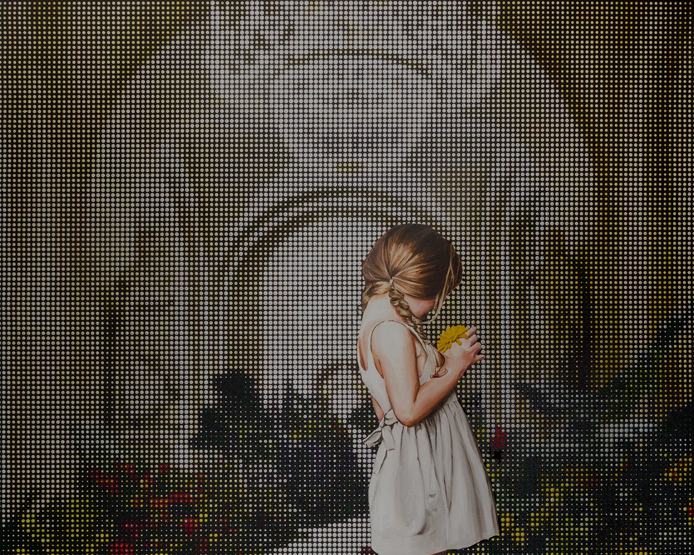 La realidad que habitamos es frágil y cambiante, moldeada por la percepción. Su trabajo explora esta paradoja al fragmentar el espacio y los objetos en pequeños puntos de pintura, disolviendo su aparente solidez. Sus obras proponen lo real como una construcción mutable, donde la mirada no solo observa, sino que participa en su creación.