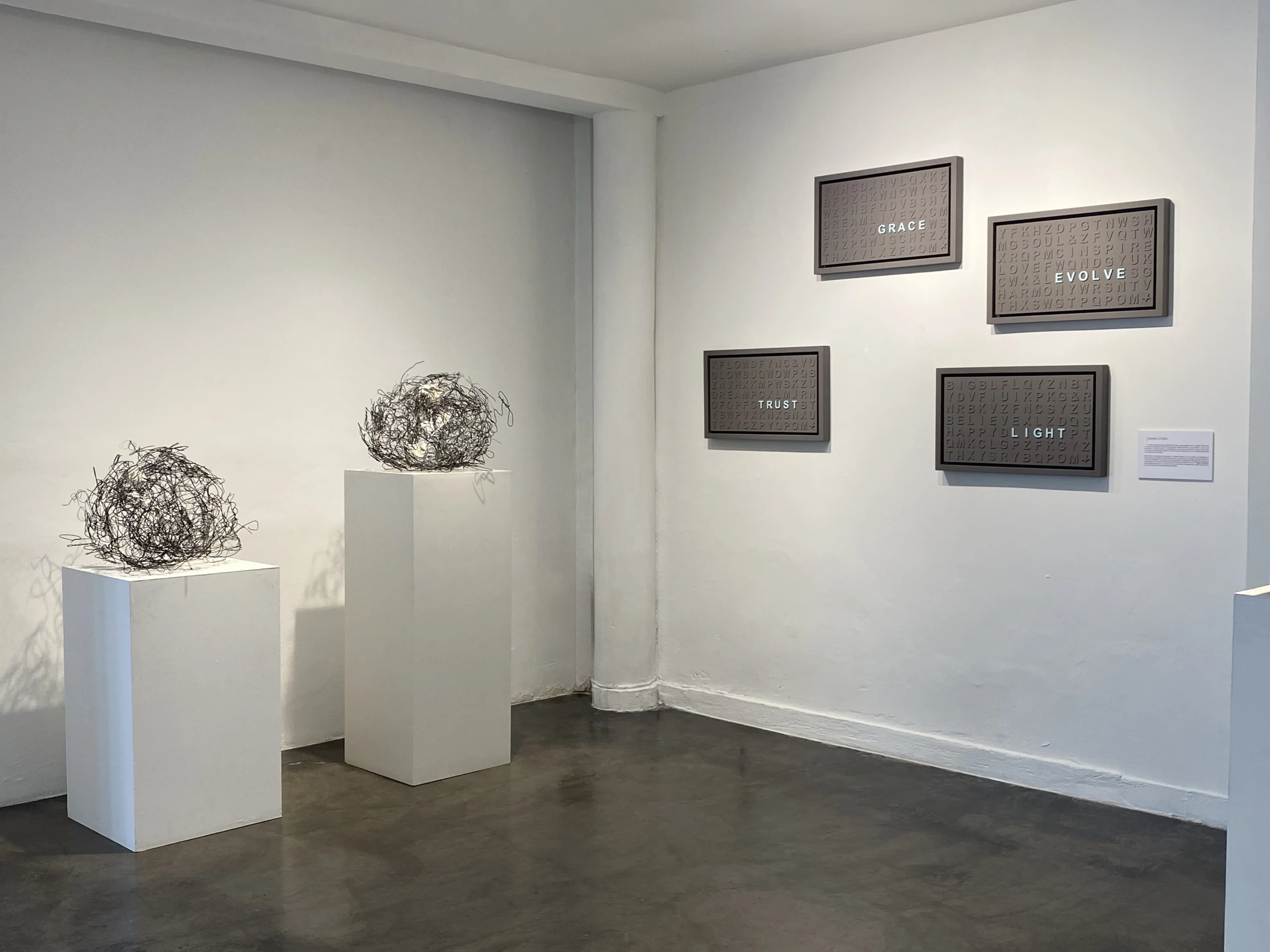 Estas obras surgen del deseo de detener el tiempo y dar forma a lo que no se quiere perder. Las flores, como símbolo de memoria y delicadeza, se combinan con cemento y alambre para transformar recuerdos y emociones en una presencia física, entre lo frágil y lo permanente.